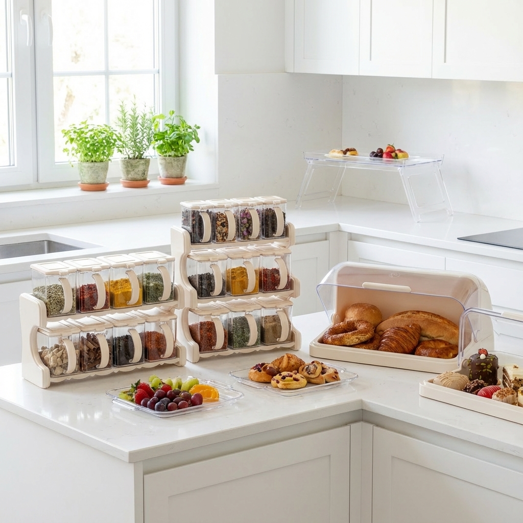 The MISK brand offers smart kitchen organization solutions, including spice containers and storage boxes for cakes and bread. Its products focus on high-quality materials, practical designs, and keeping food fresh while enhancing kitchen aesthetics.