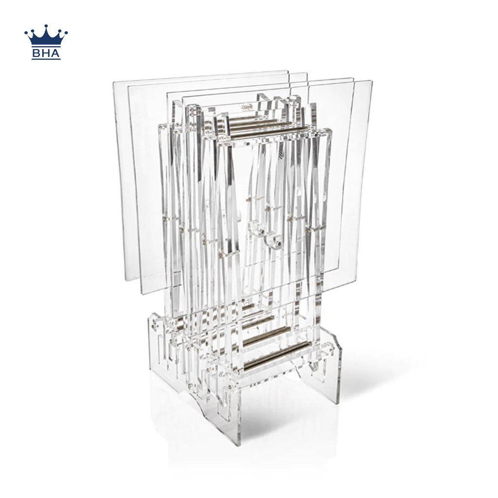 طاولات أكريليك فاخرة مع ستاند للتخزين، مصنوعة من أكريليك نقي بسماكة 8 مم، صناعة تايوانية فاخرة .