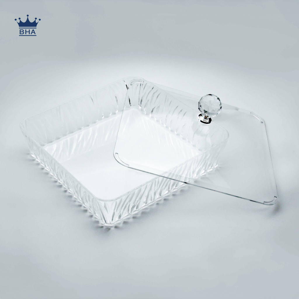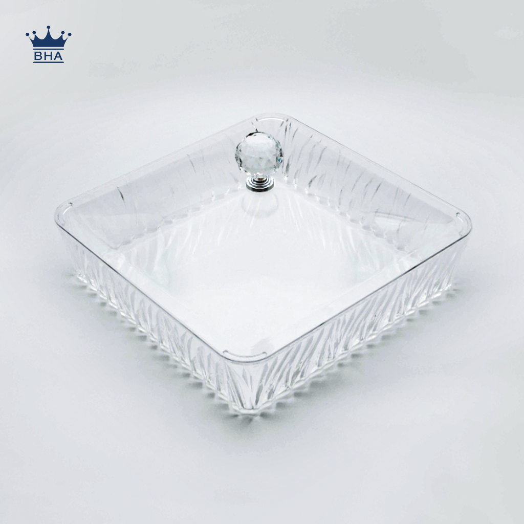 أطباق أكريليك شفافة بجودة عالية جداً، مصنوعة من أكريليك نقي، أنيقة ومثالية للضيافة بأشكال متعددة.